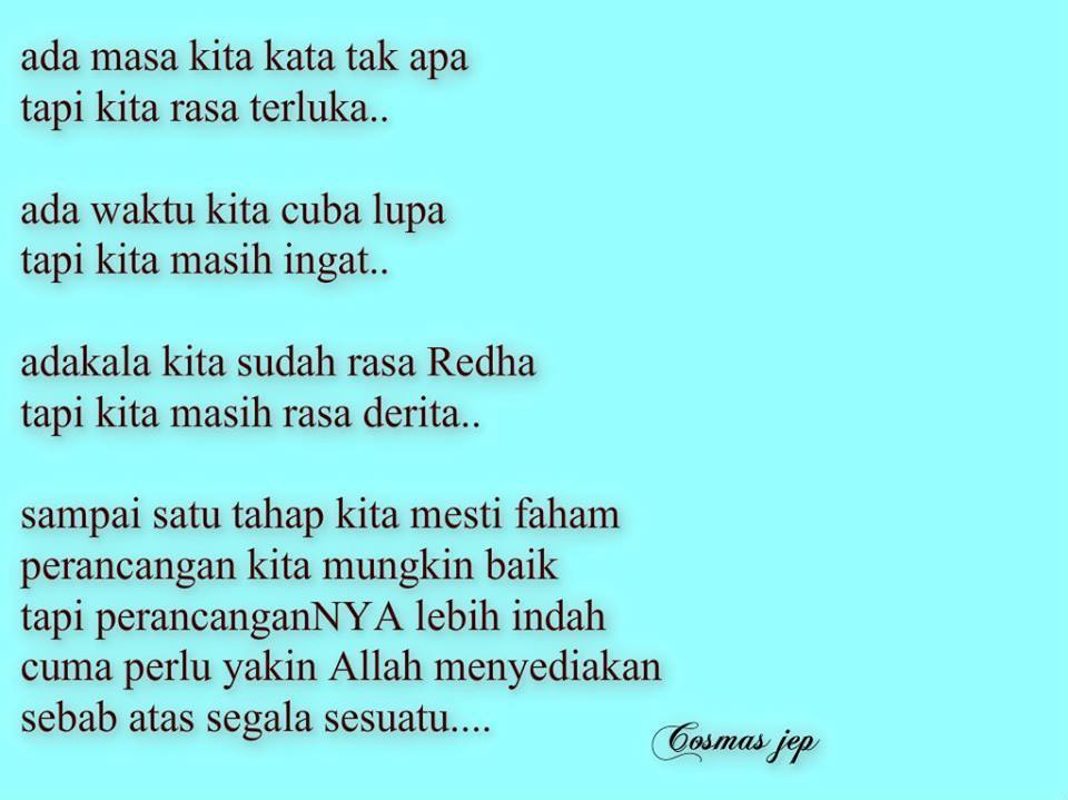 Jangan tanya kenapa ia tak berlaku sebab aku redha dengan segala ketentuanNya..